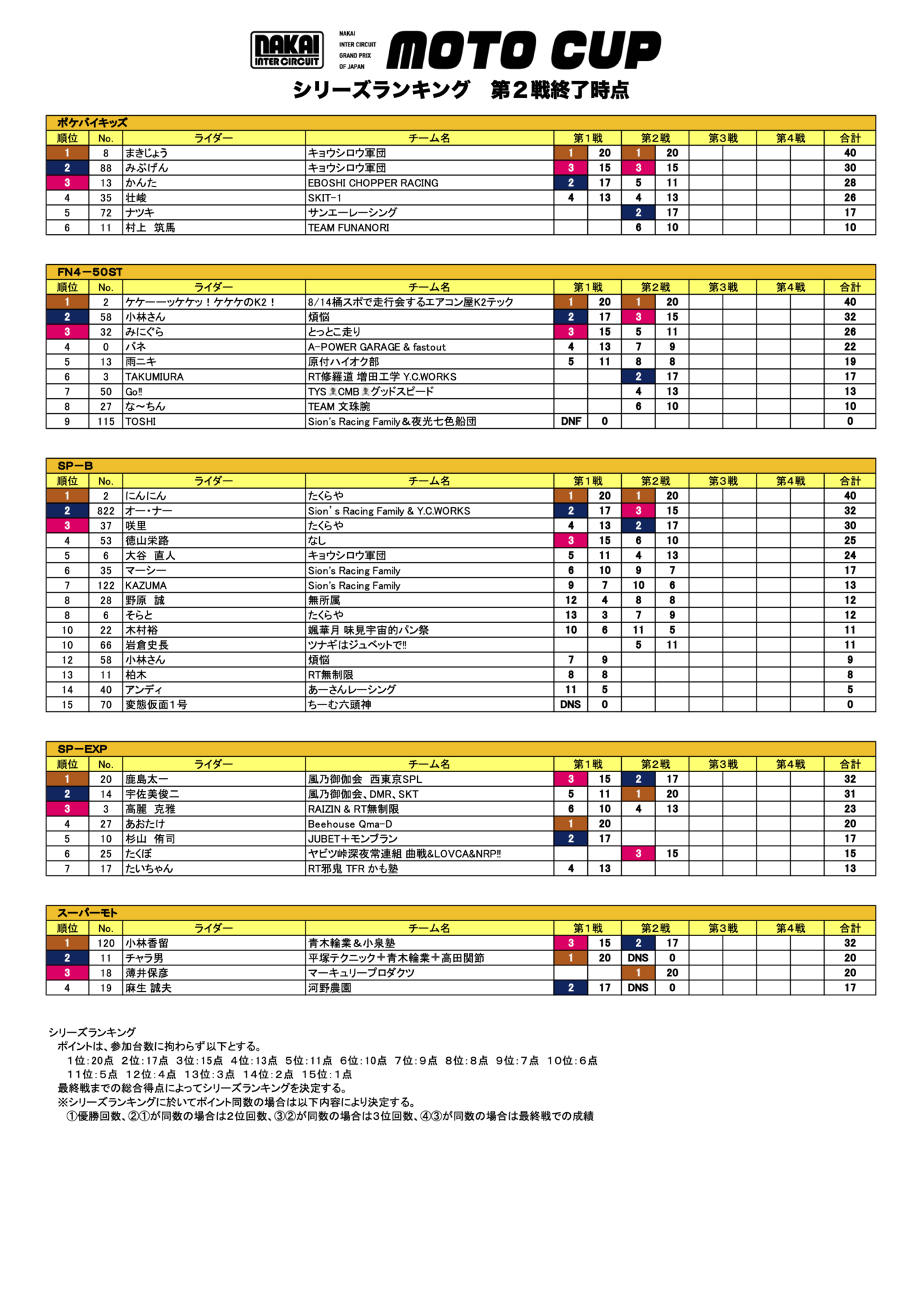 モトカップ2025 第3戦 ポイントランキング|神奈川でカート、ポケバイ、バイクのレンタル・レースなら中井インターサーキットへ 営業時間 平日13:00~20:00 土・日・祝8:00~20:00 定休日水・木
