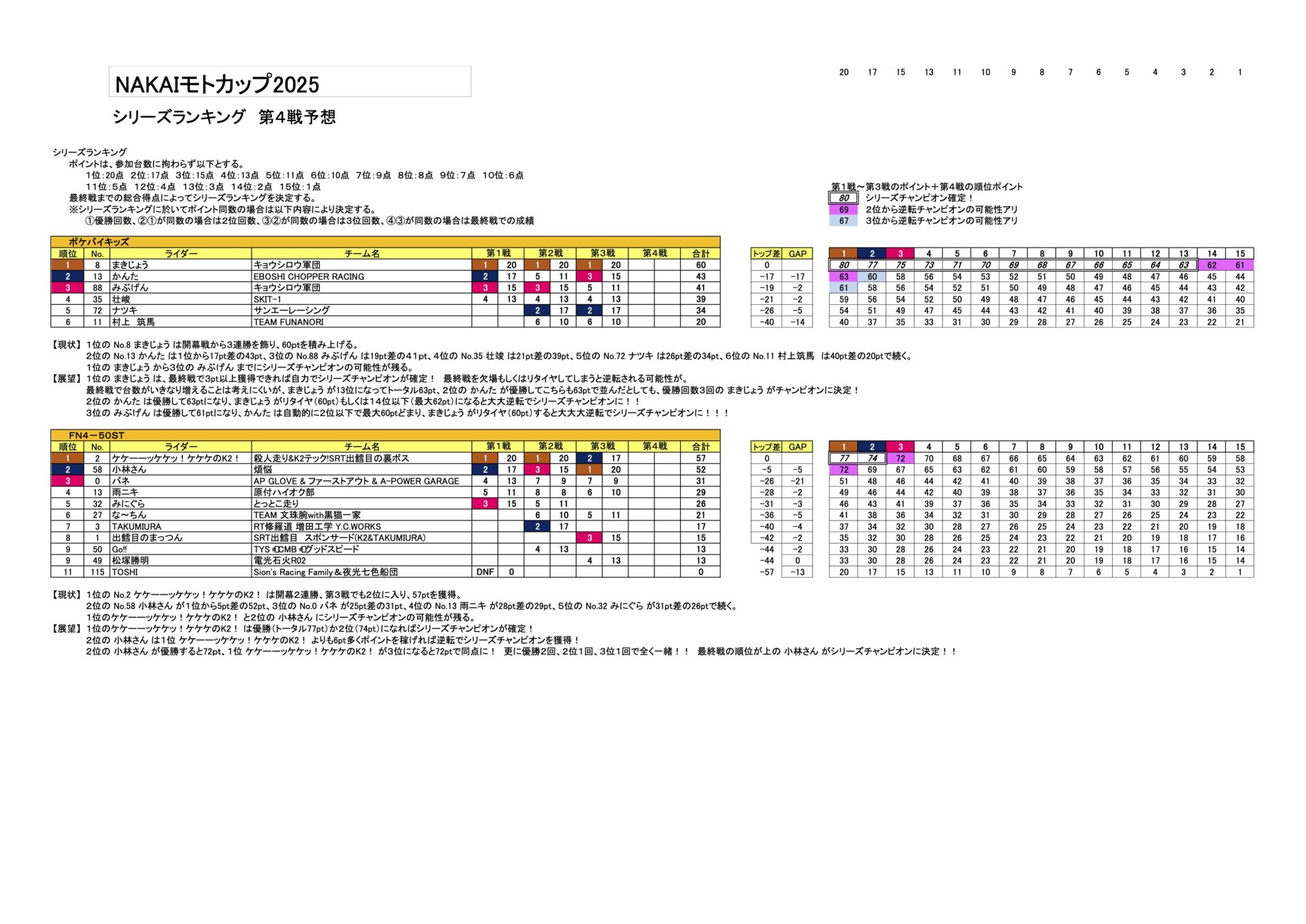 2025 モトカップシリーズ R4予想|神奈川でカート、ポケバイ、バイクのレンタル・レースなら中井インターサーキットへ 営業時間 平日13:00~20:00 土・日・祝8:00~20:00 定休日水・木